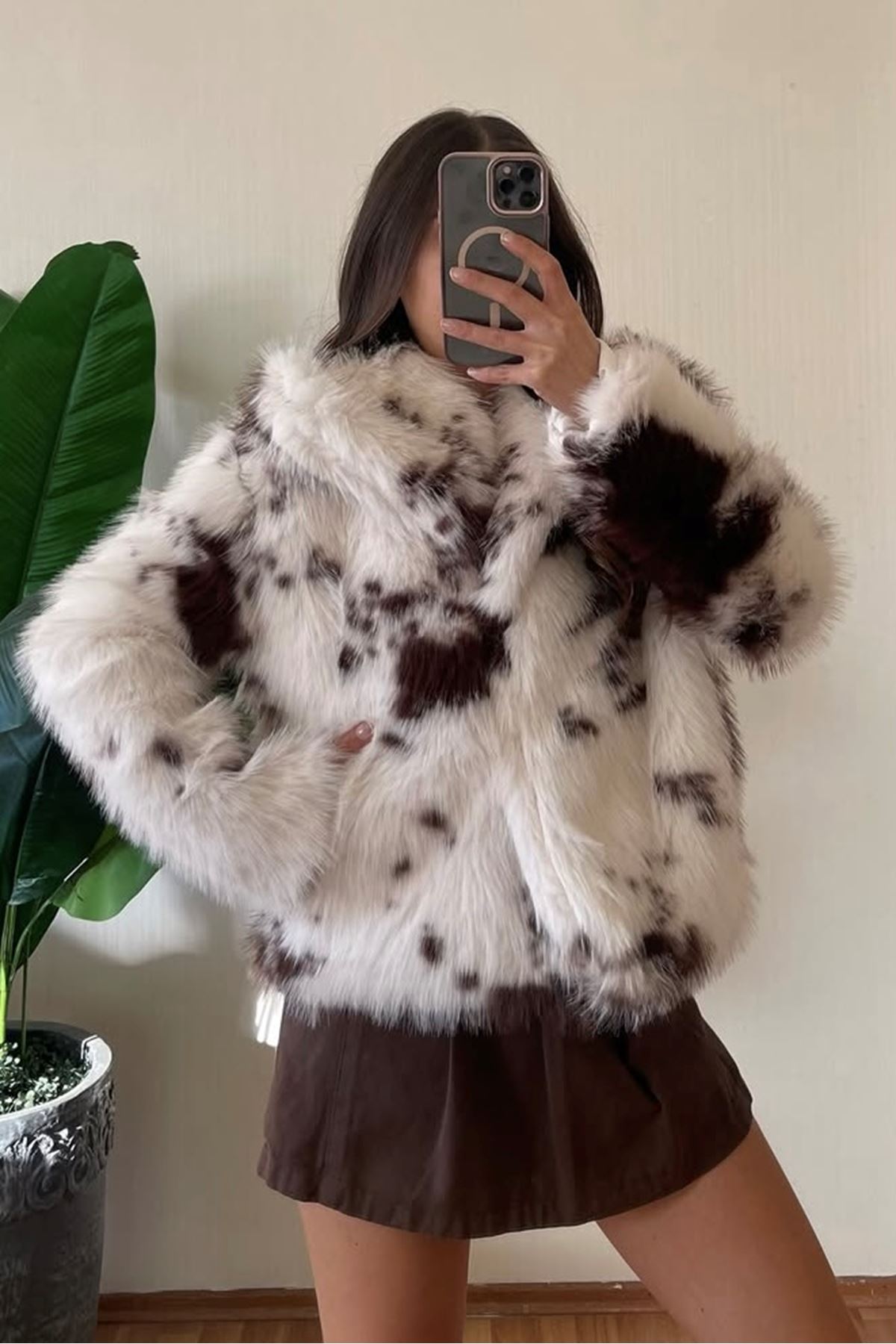 Dalmaç Desen Yakalı Cepli Kürk Mont