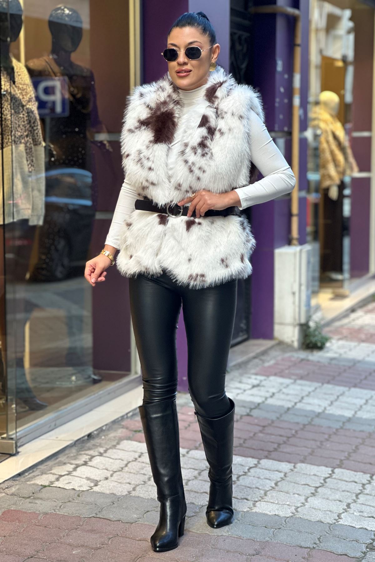 Dalmaç Desenli Deri Kemerli Kürk Yelek