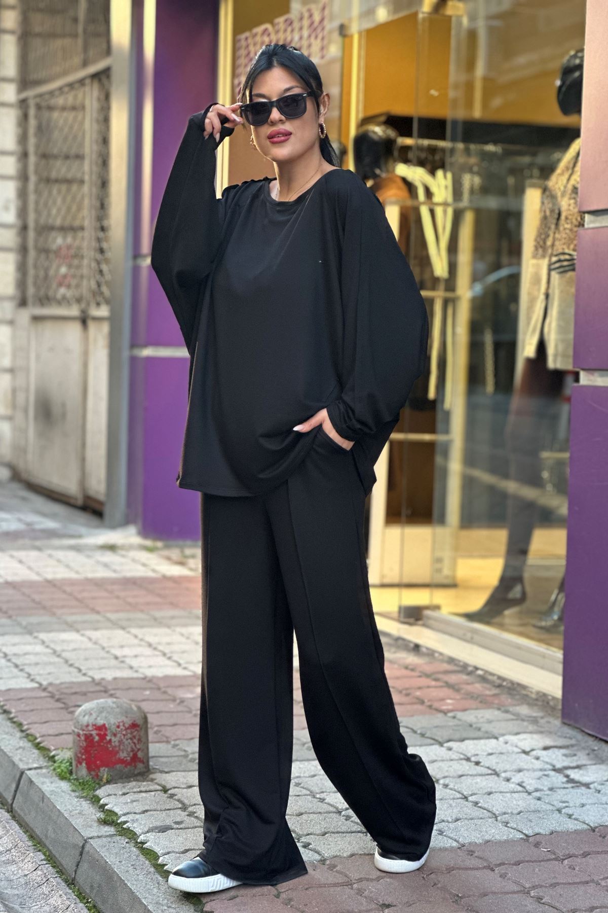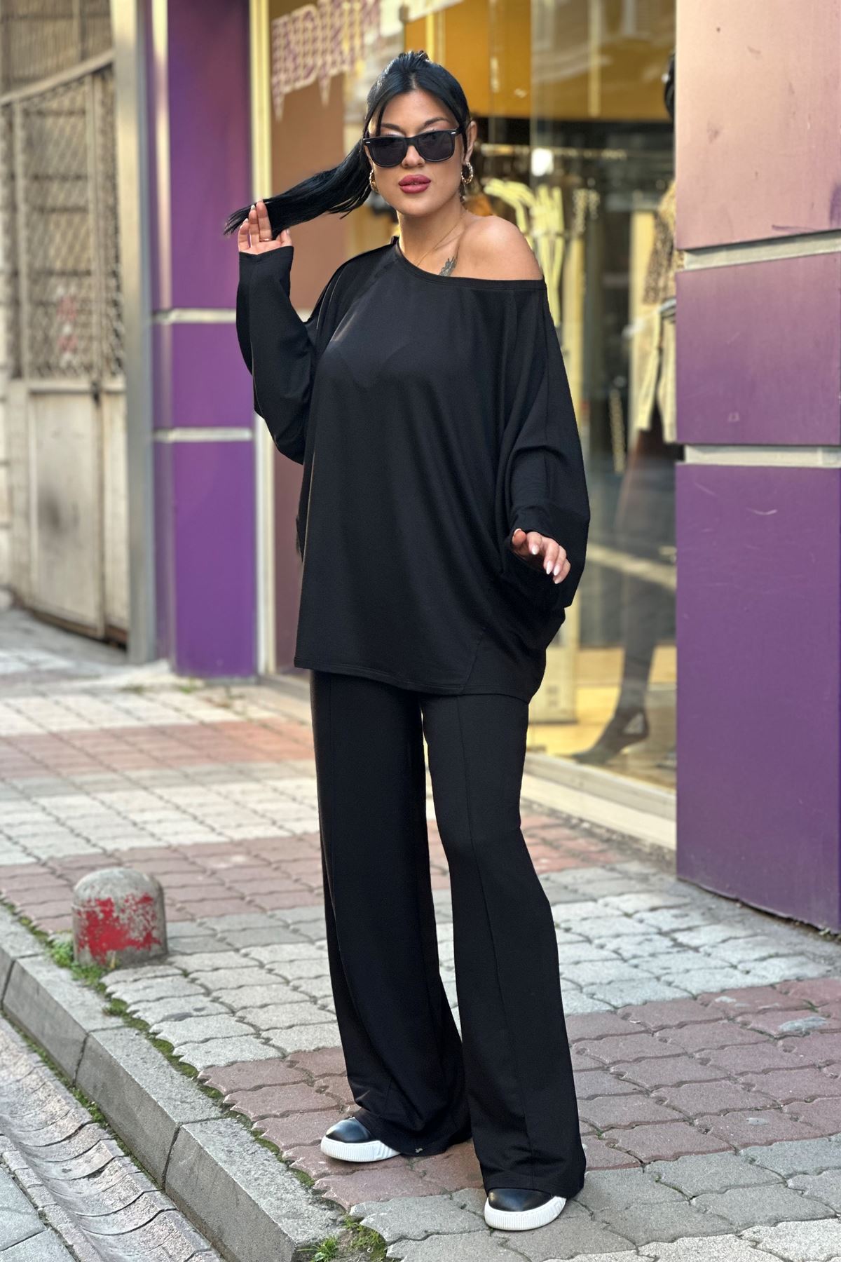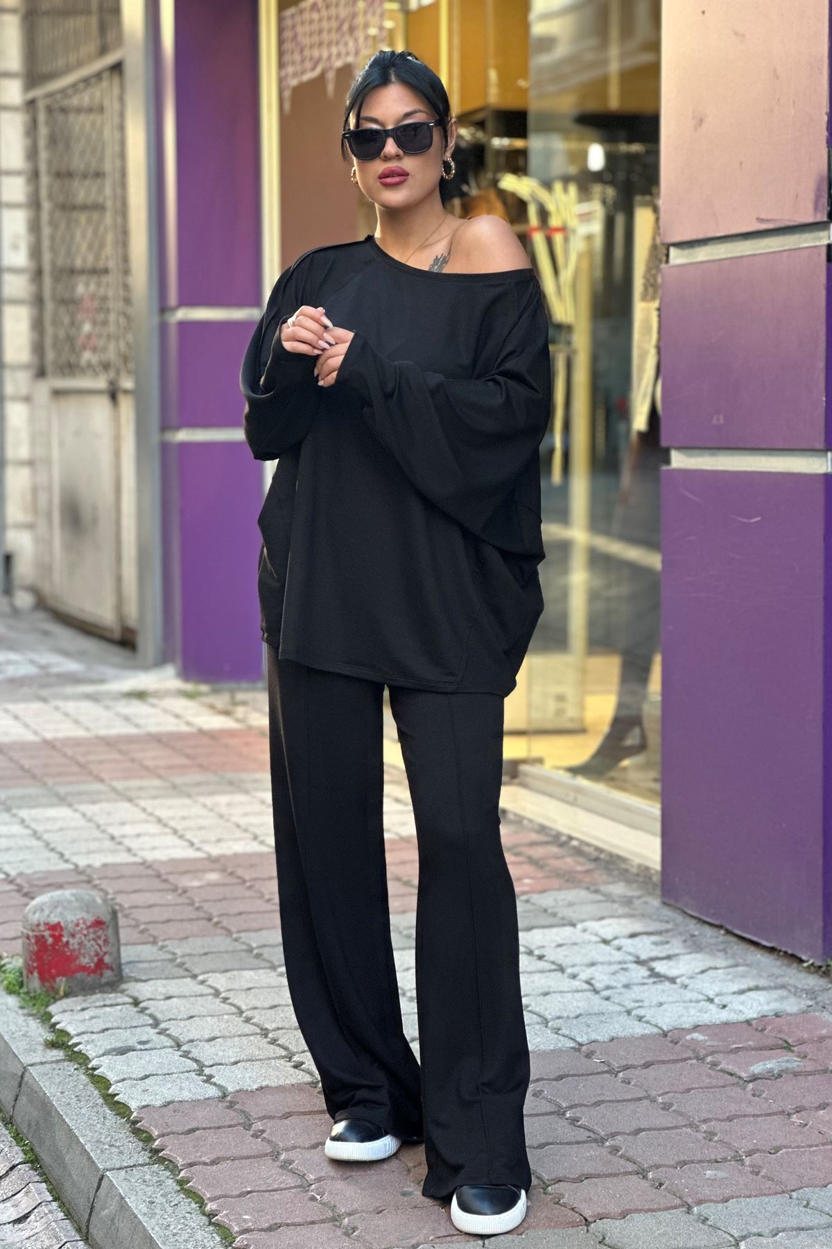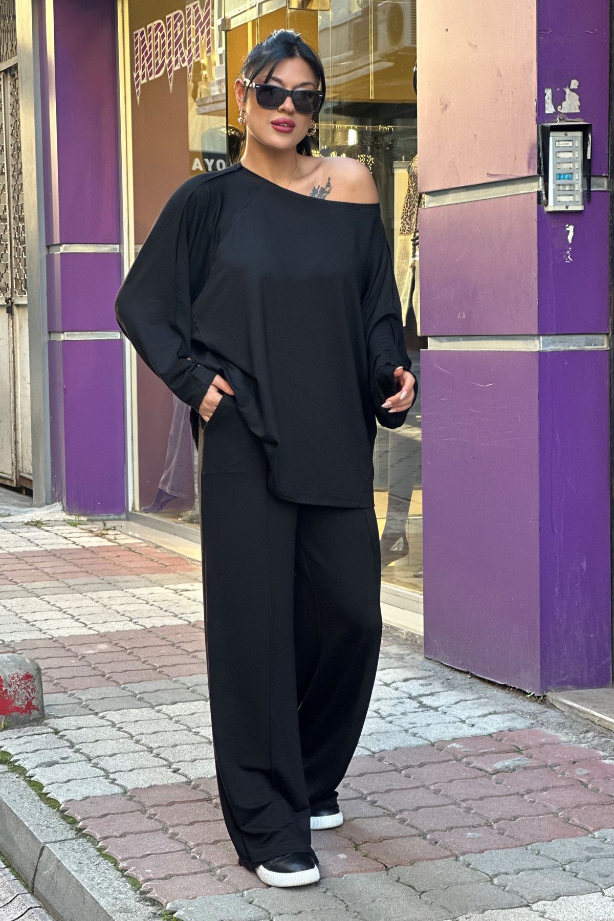 Düşük Omuz Salaş İkili Takım-Siyah