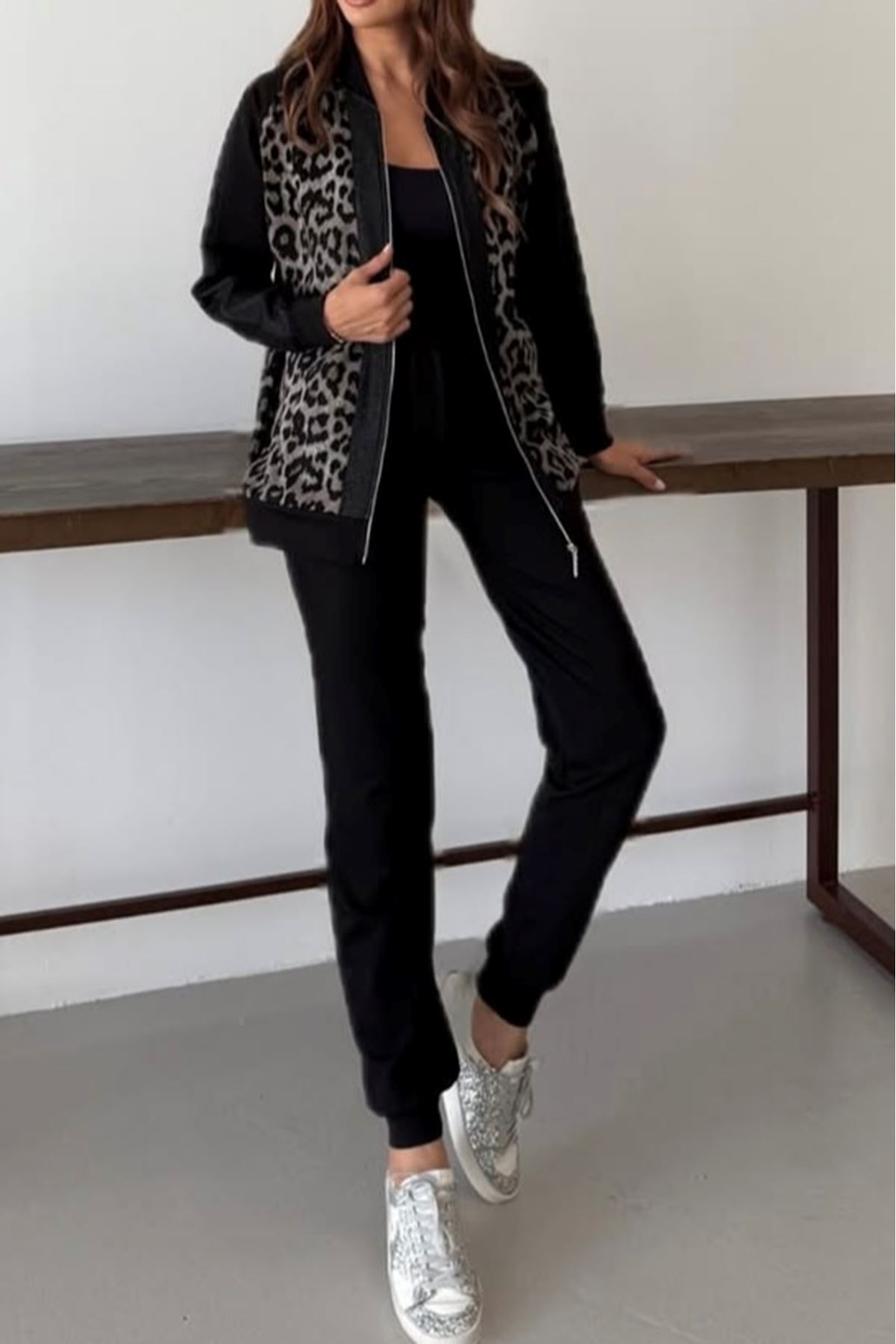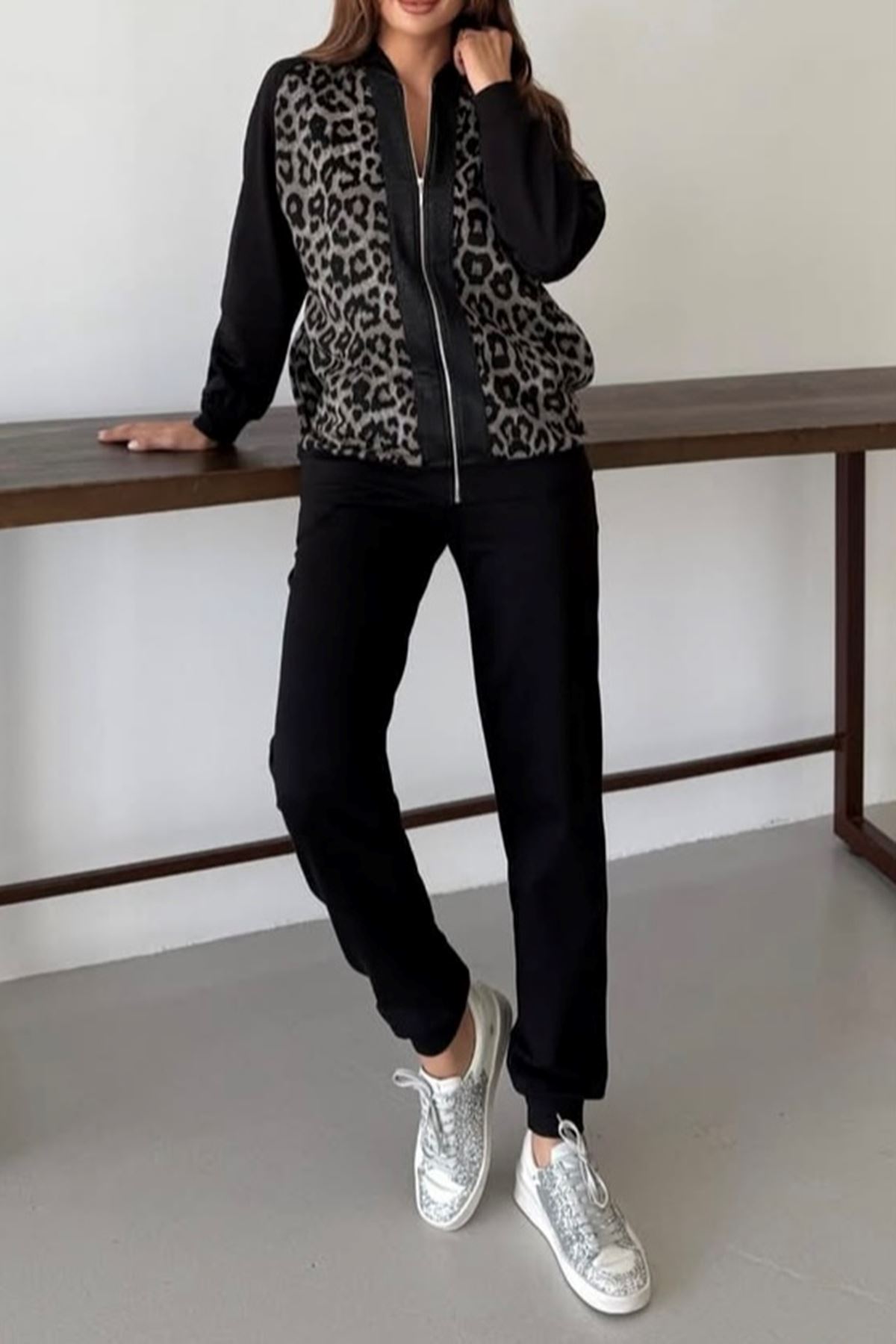 Jakarlı Leopar Desenli İkili Takım-Leopar