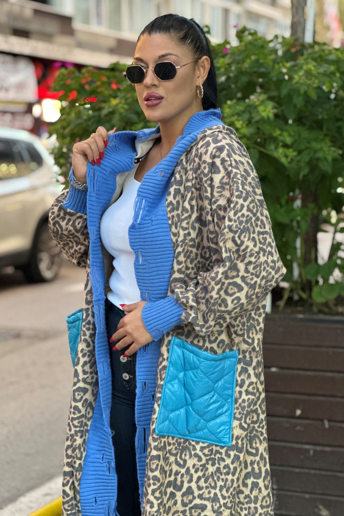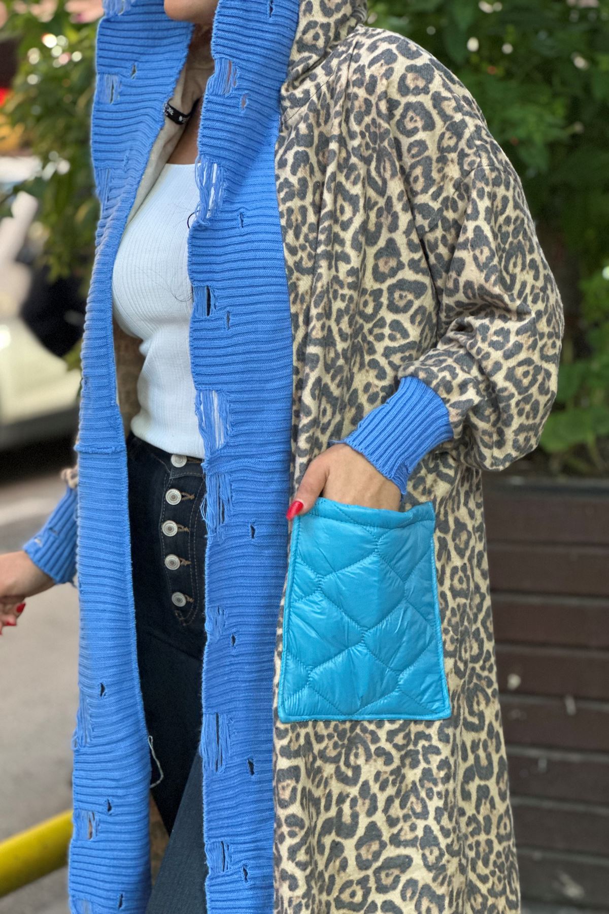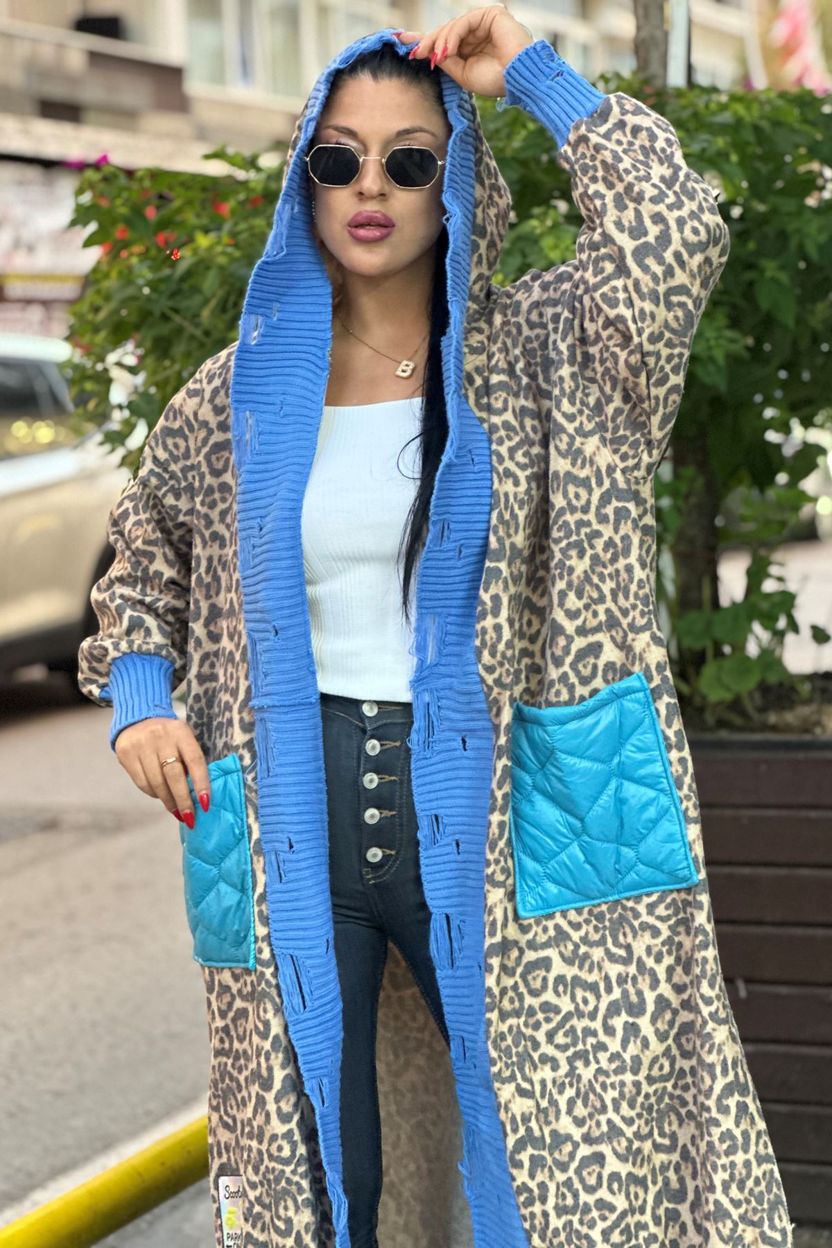 SEE MORE 001 KAHVE DESENLİ UZUN KAŞE HIRKA