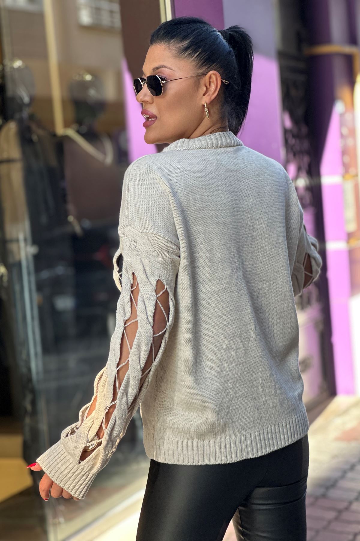 Kol Örgü Detay Ön Pencereli Triko Kazak