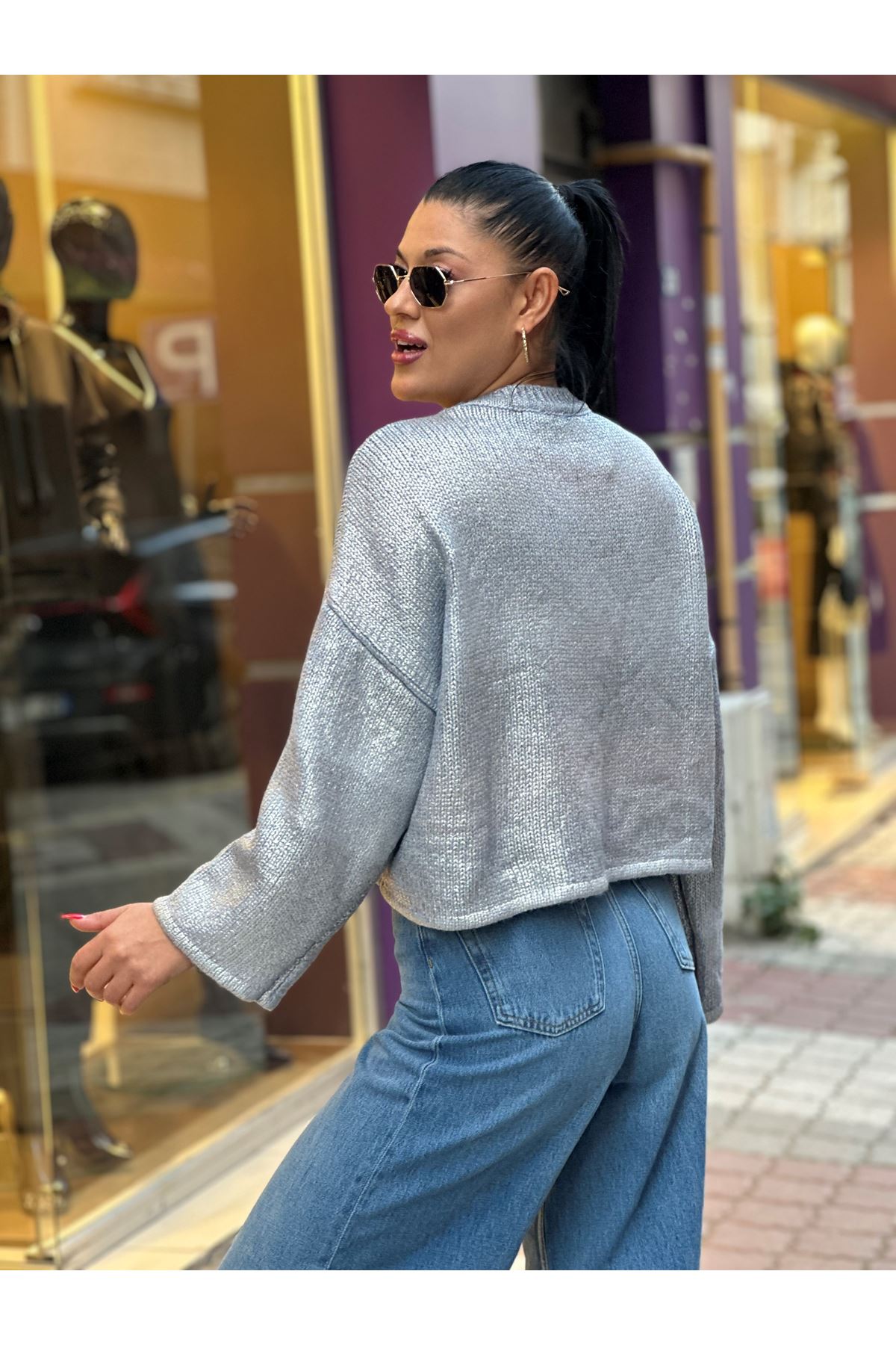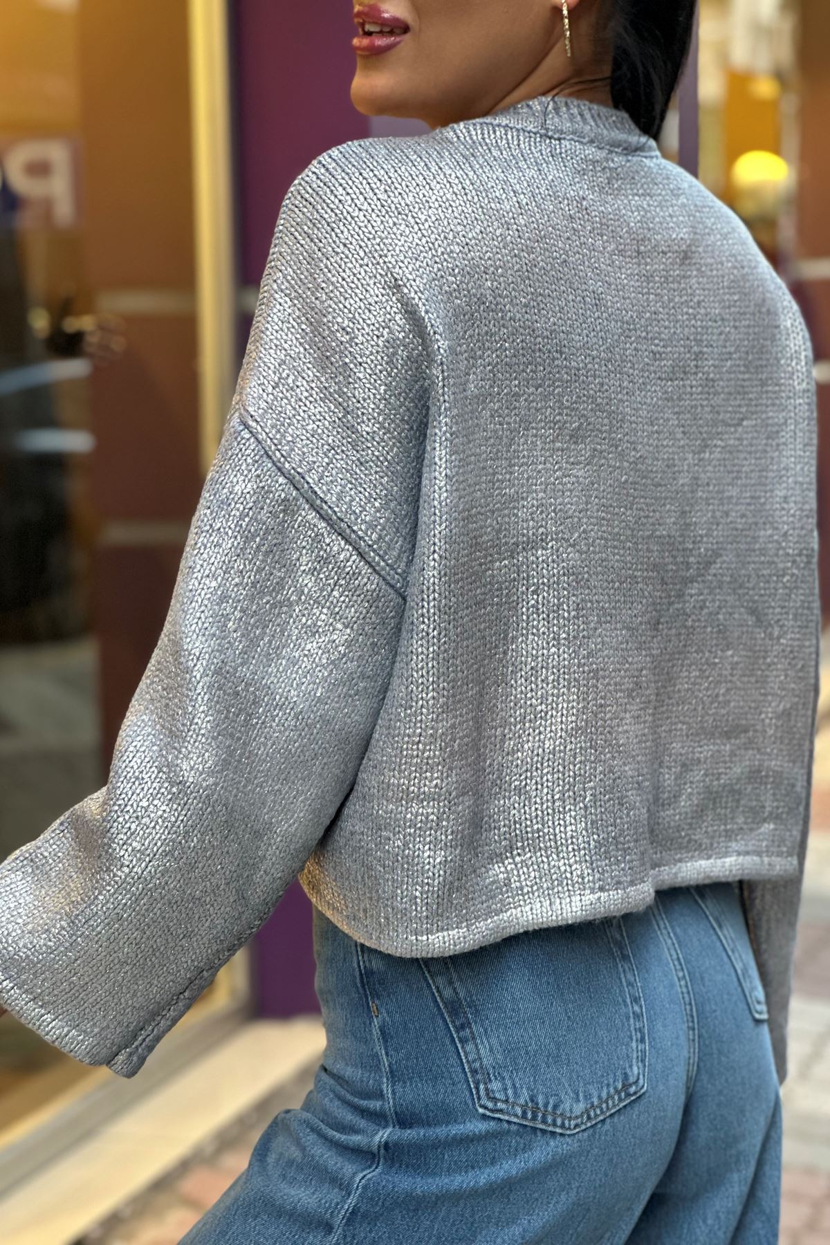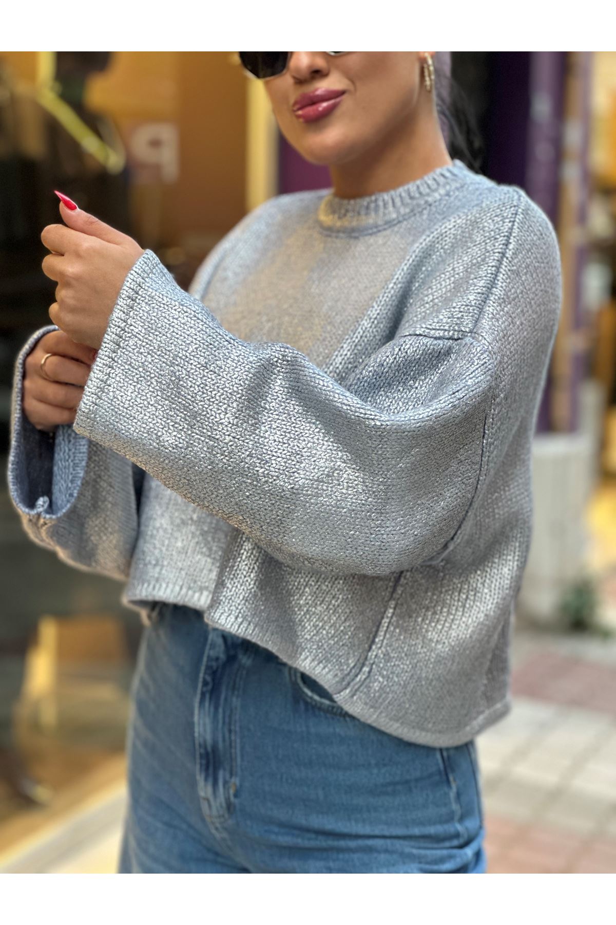 Kolları Salaş Kendinden Varaklı Kazak-Mavi