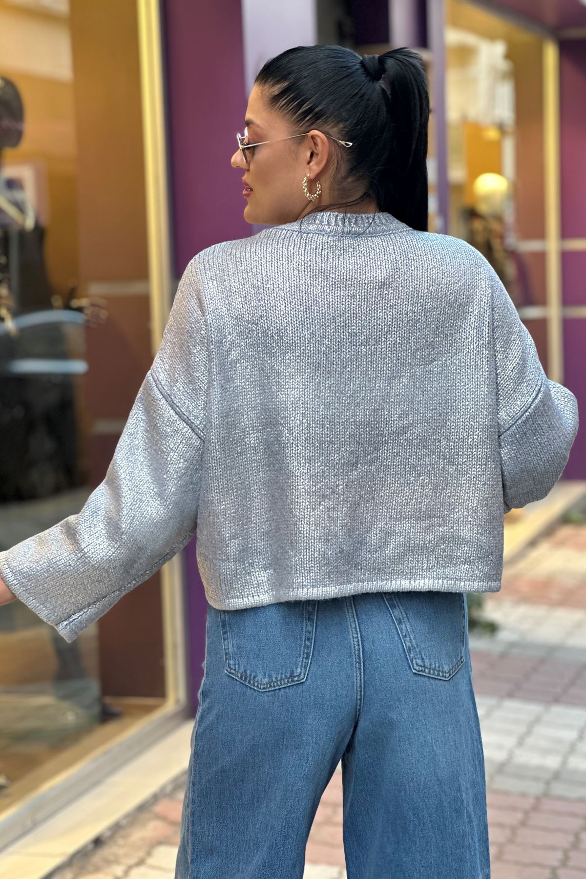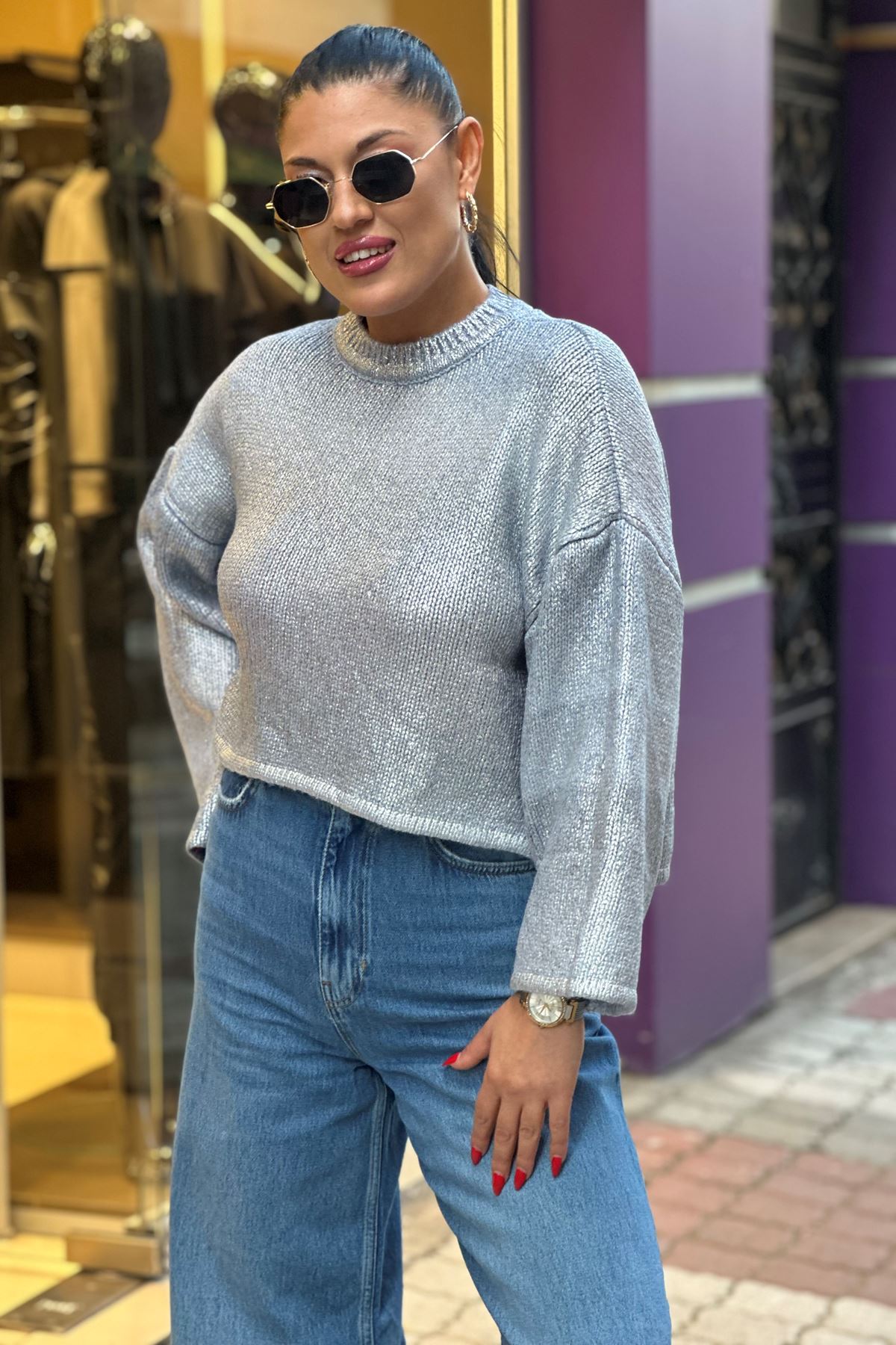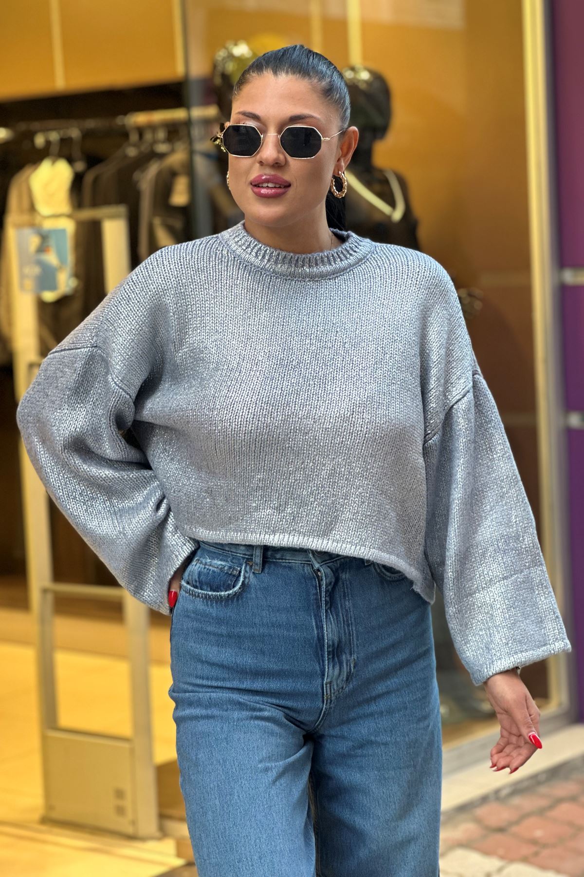 Kolları Salaş Kendinden Varaklı Kazak-Mavi