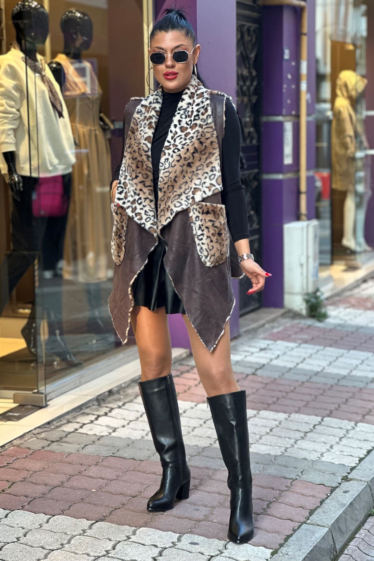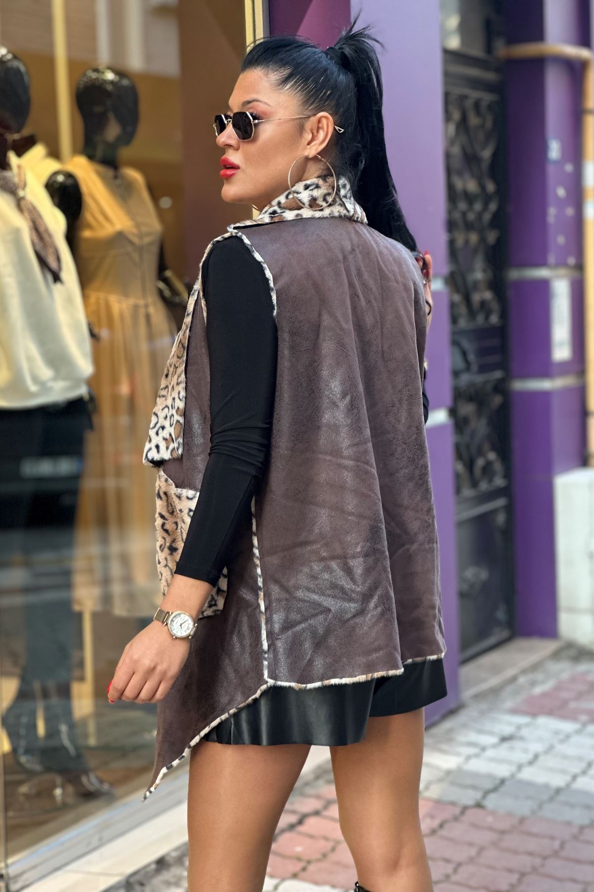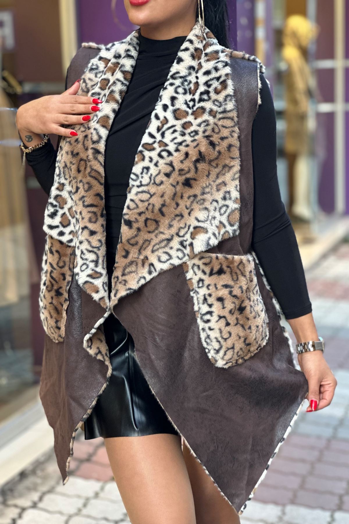 EFSANE 003 LEOPAR DESENLİ NUBUK YELEK