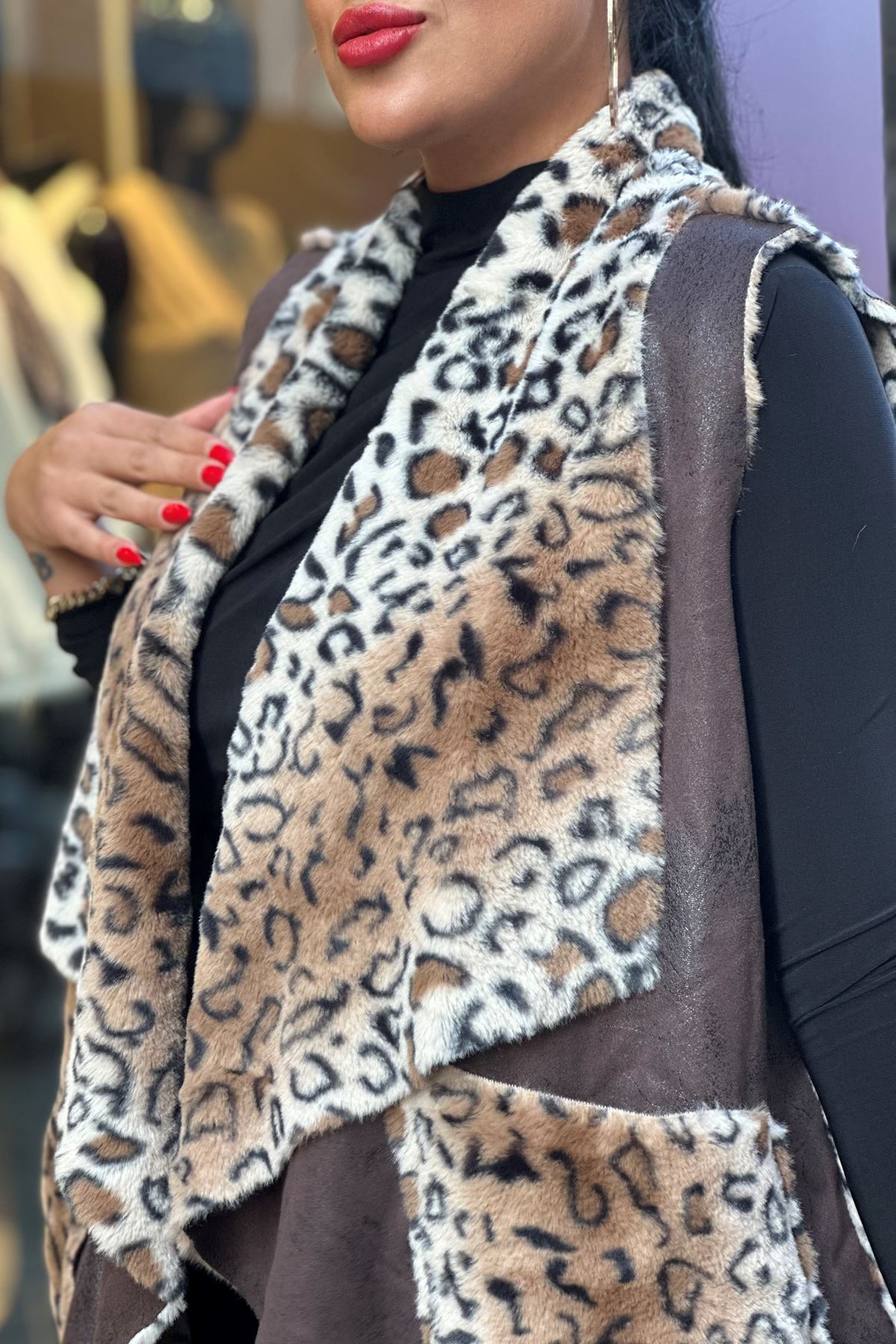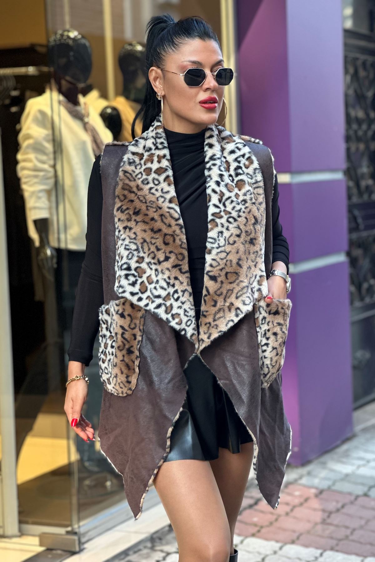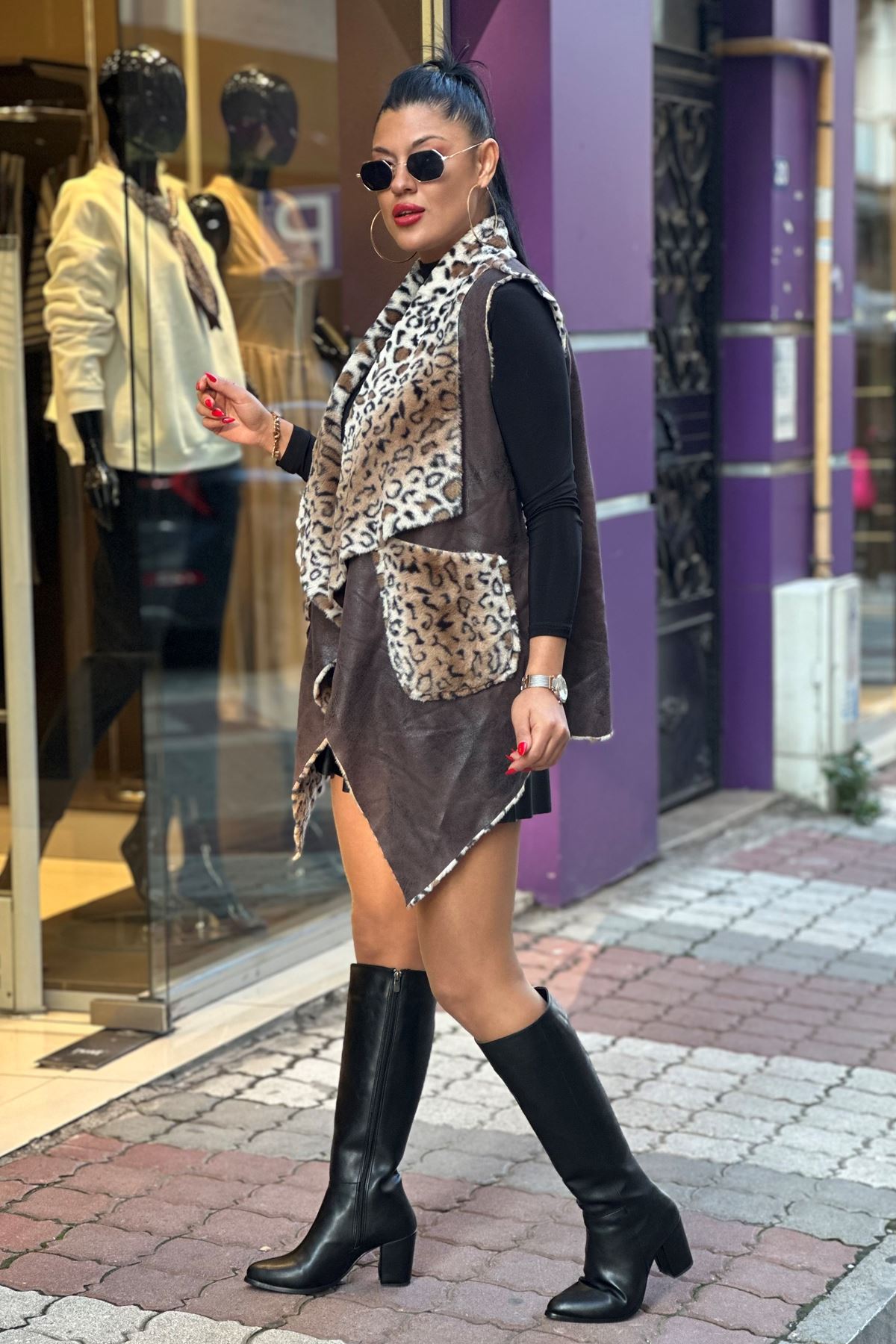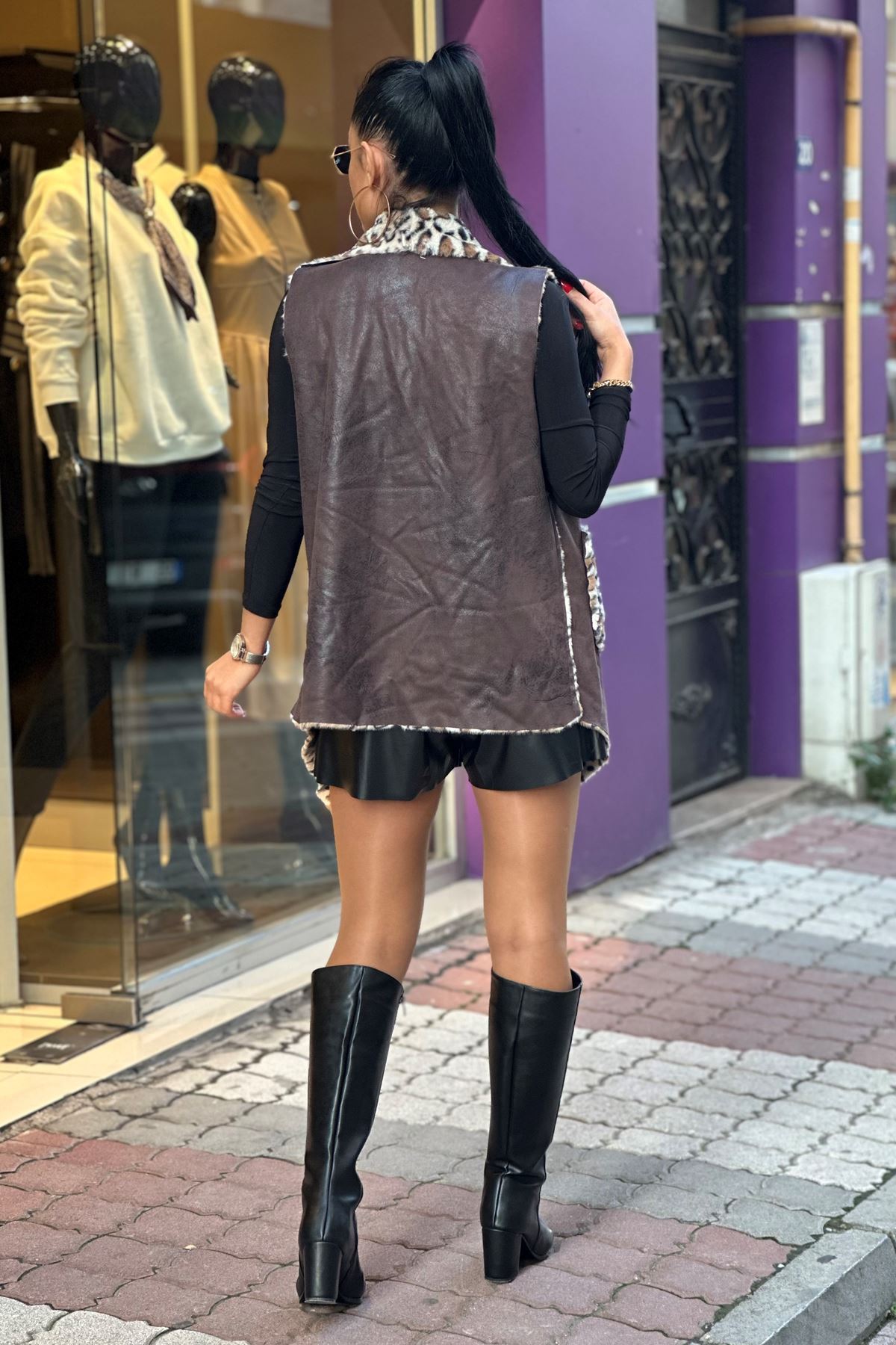 EFSANE 003 LEOPAR DESENLİ NUBUK YELEK