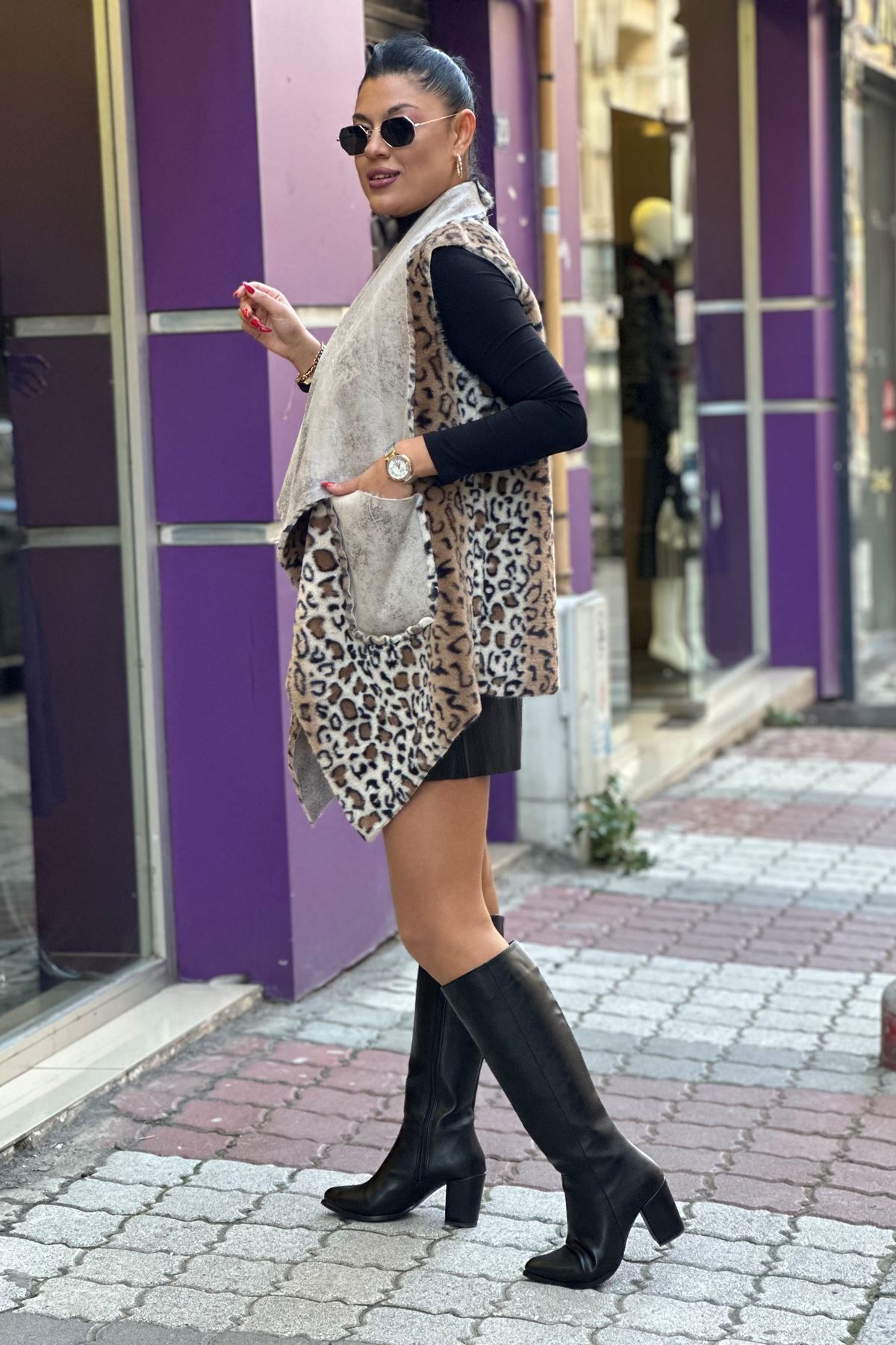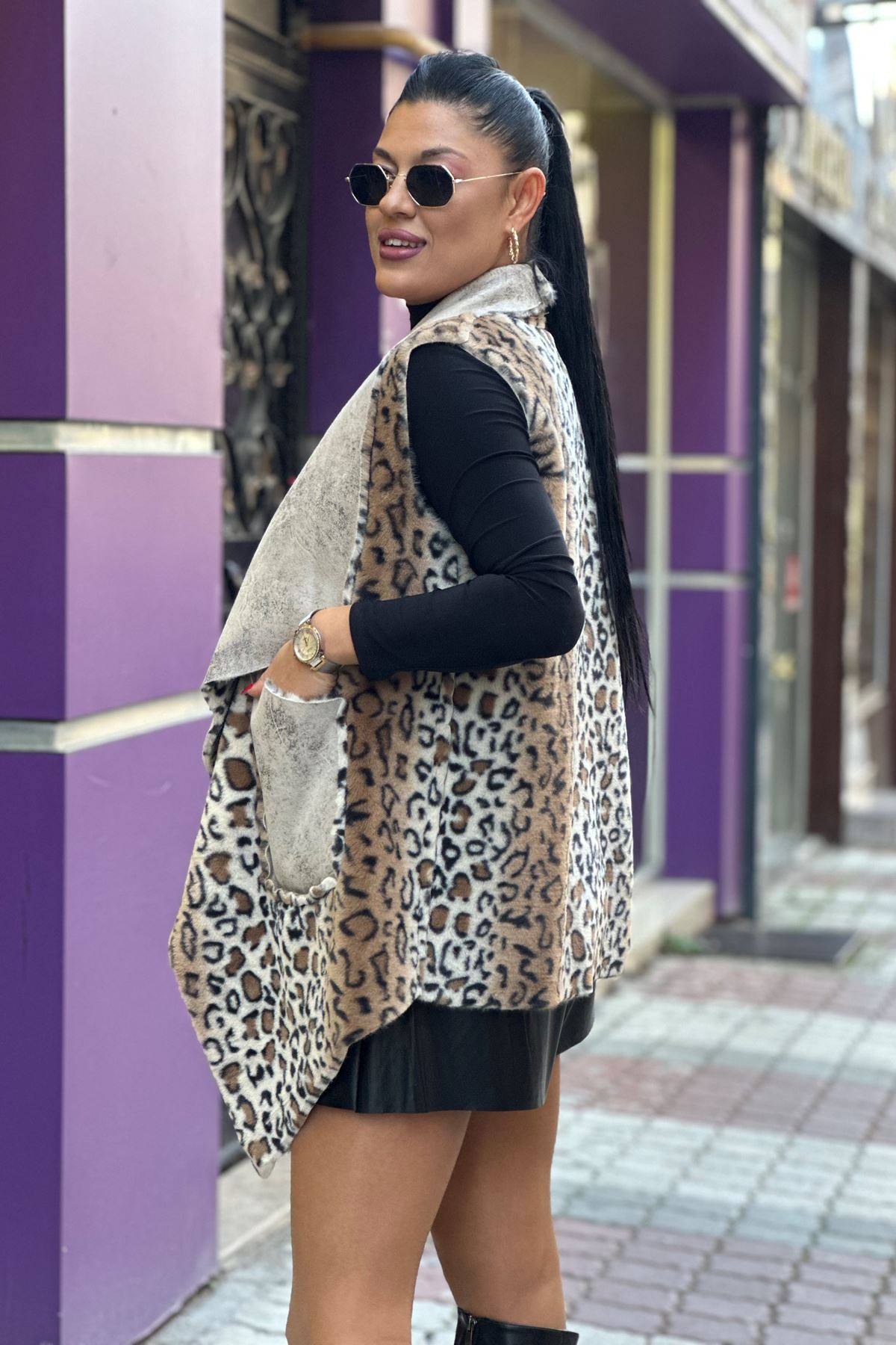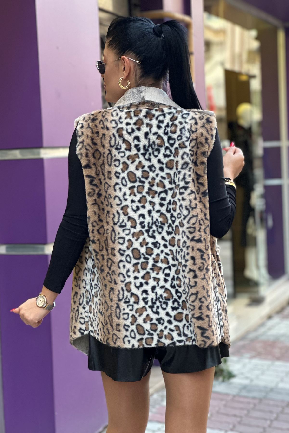 EFSANE 003 LEOPAR DESENLİ NUBUK YELEK