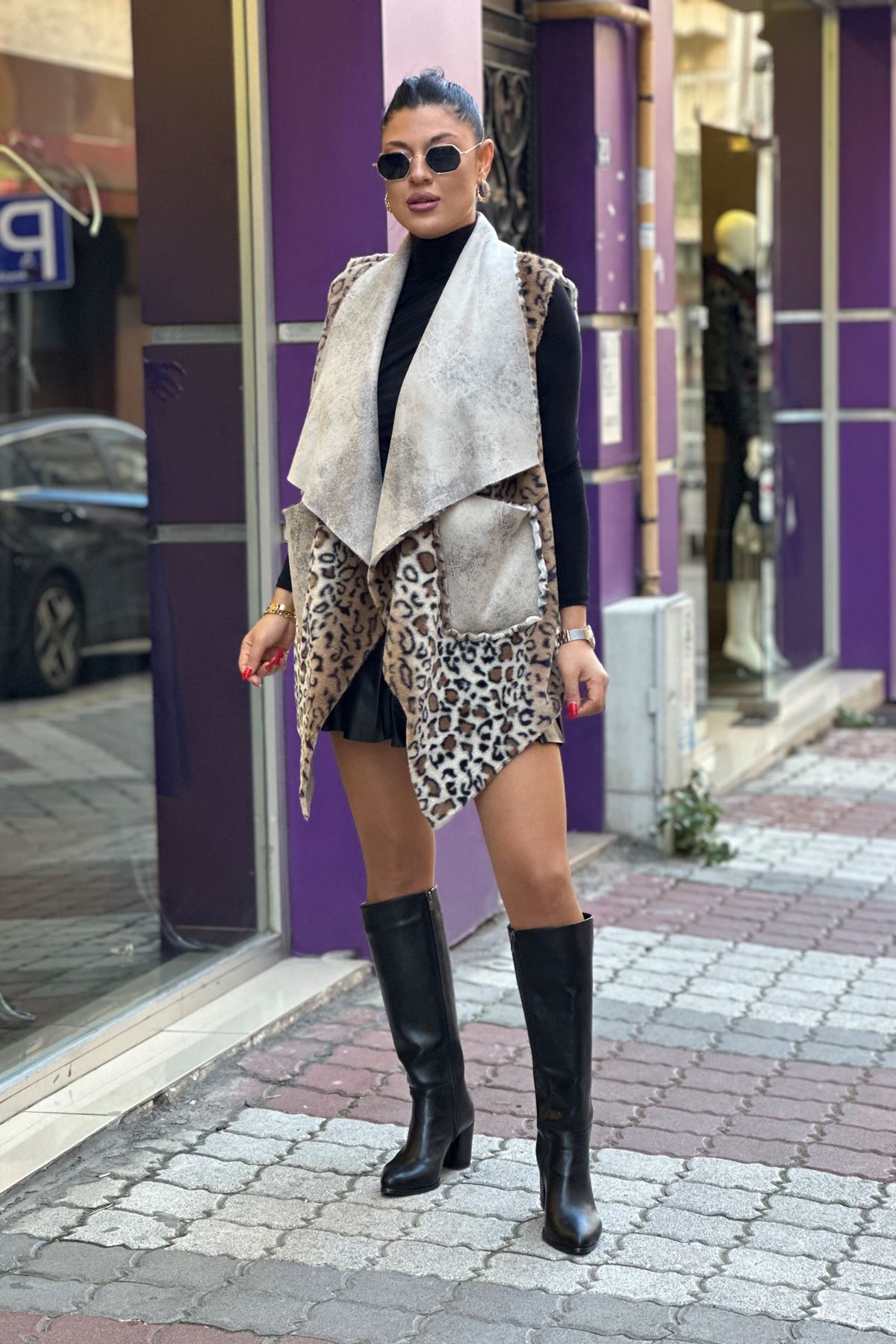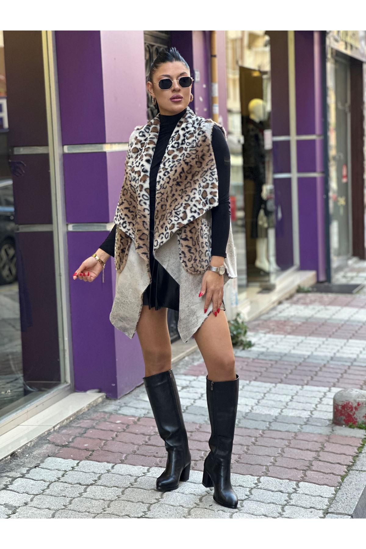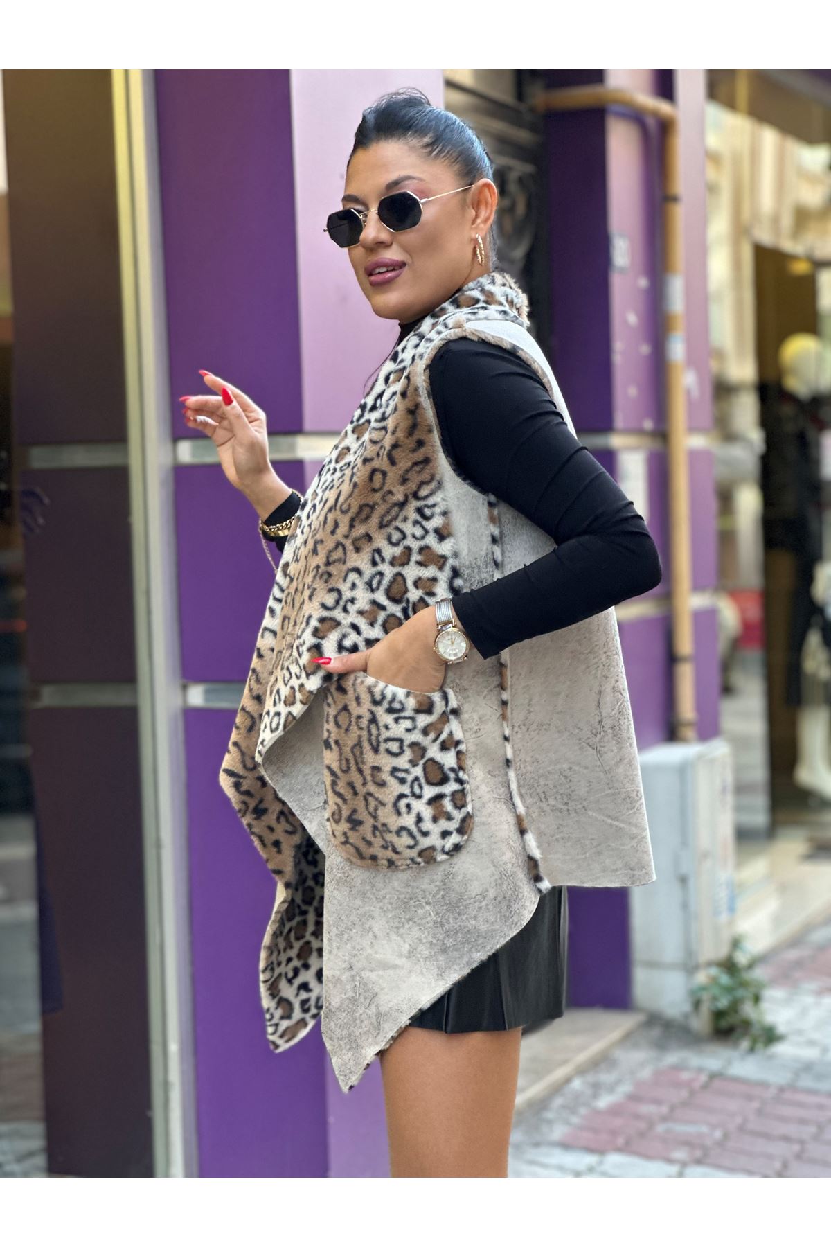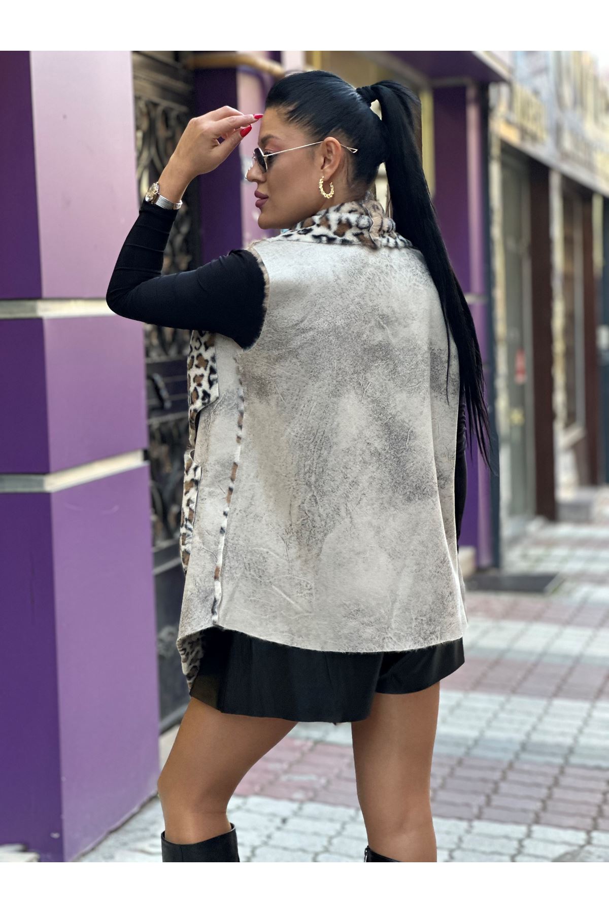 EFSANE 003 LEOPAR DESENLİ NUBUK YELEK