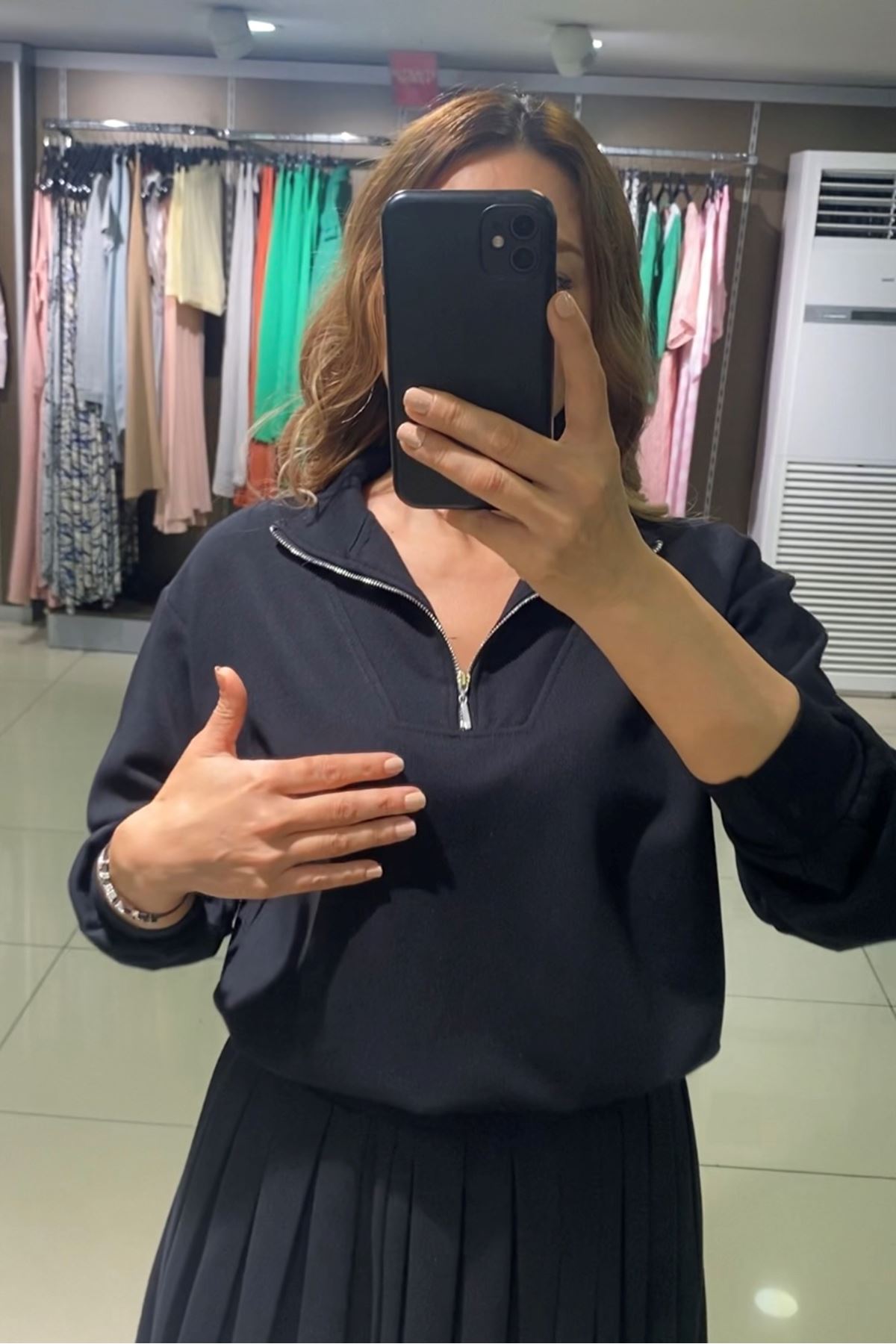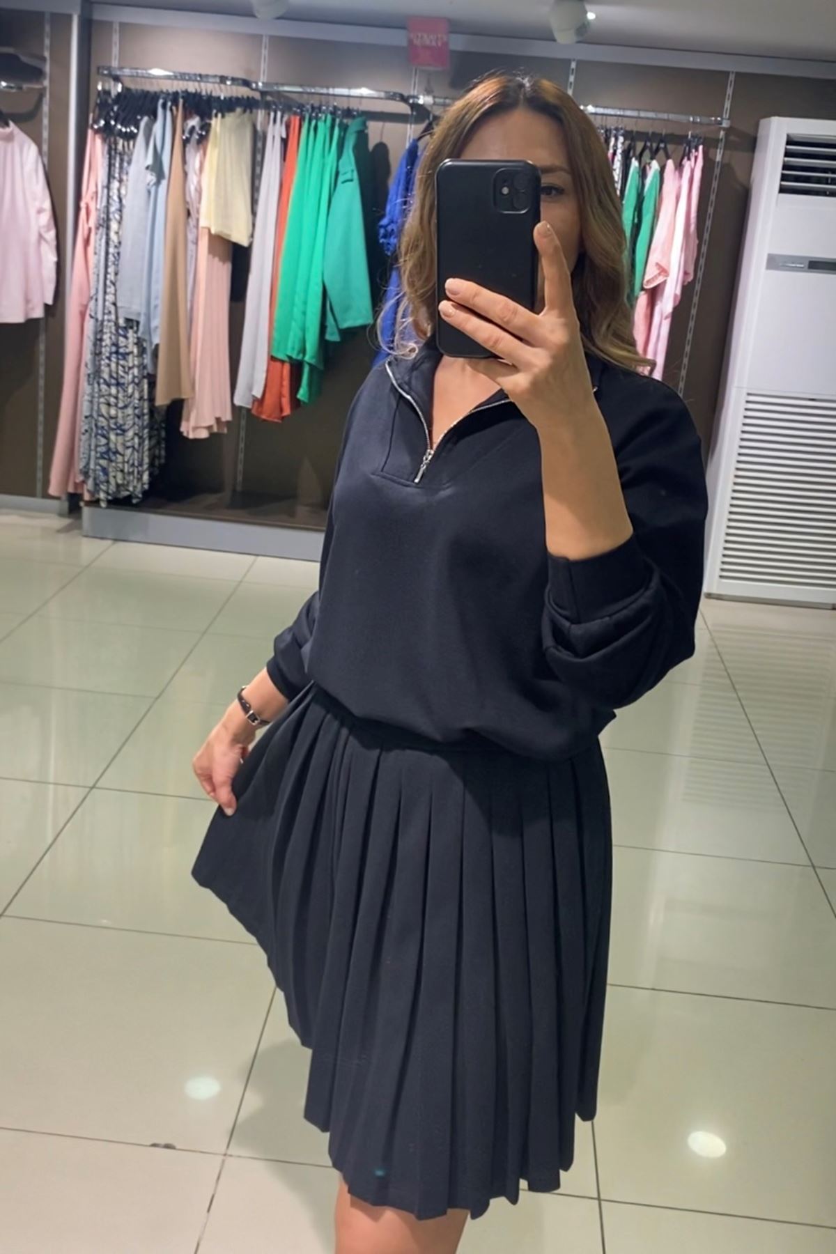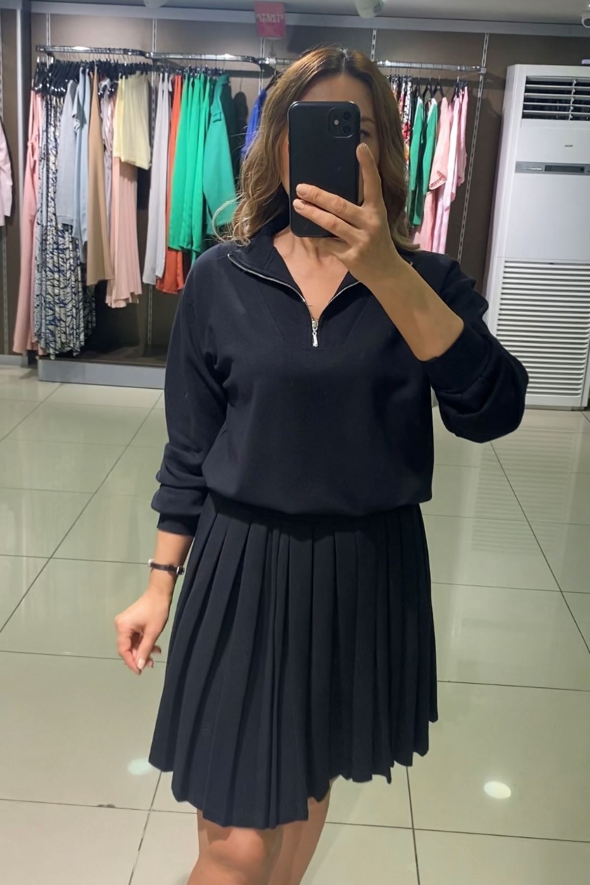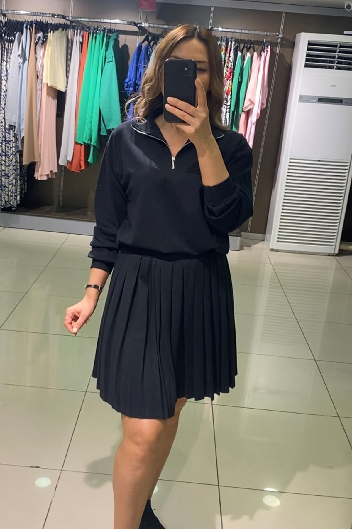 Yaka Fermuar Detay Etekli İkili Takım-siyahrugan