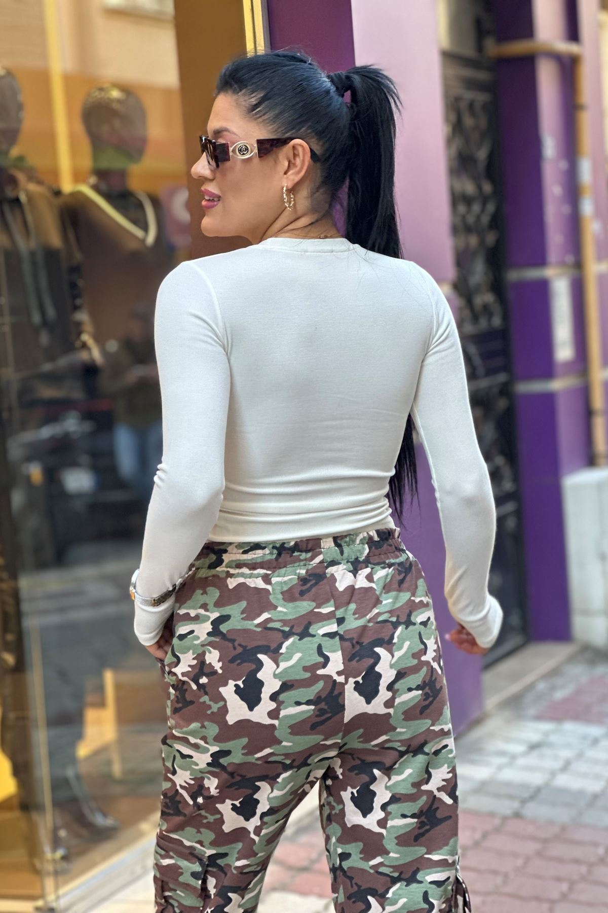 Parmak Geçirmeli Dar Likralı Bluz-Beyaz