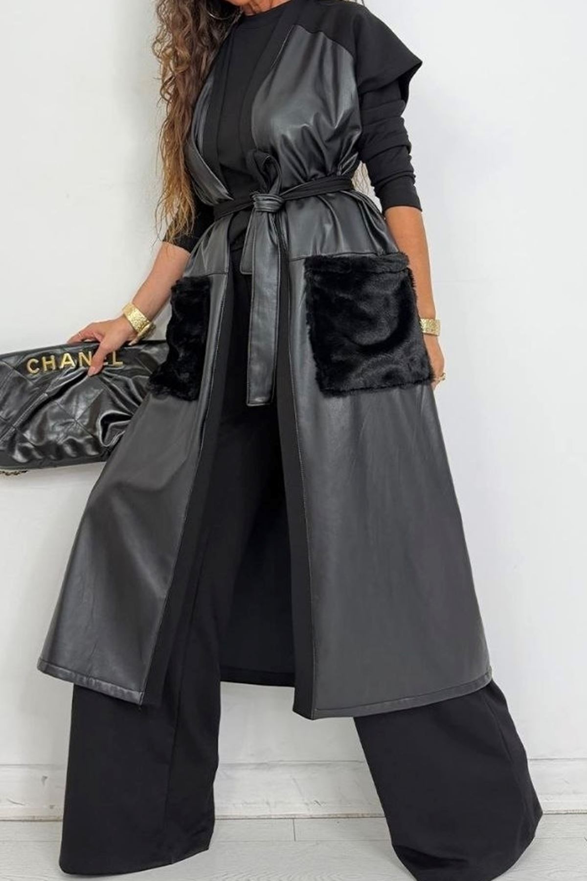 Uzun Deri Yelekli Üçlü Takım