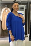 V yaka Salaş Pamuklu Triko Bluz-Saksmavi